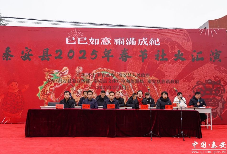 蒋露在致辞中说,秦安县2025年春节社火汇演活动,既是县委、县政府贯彻落实习近平文化思想,满足人民群众日益增长的精神文化需求的生动实践,也是全县开展文化惠民活动,提升群众文化获得感和幸福感的重要内容。各参演队伍用精彩纷呈的社火表演共贺乙巳蛇年新春佳节,用高台战鼓奏响娲乡儿女的昂扬斗志,“舞”出幸福生活好光景,“耍”出传统民俗文化范,为全县人民献上一道独具地域特色的“文化盛宴”。