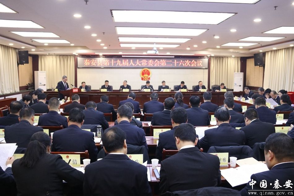 2月19日,秦安县人大常委会主任马顺祥主持召开秦安县第十九届人大常委会第二十六次会议。县人大常委会副主任胡继仁、王优峰、宋军吉、任云飞及委员出席会议。县委常委、常务副县长刘云桂,县委常委、纪委书记、监委主任高小强,县法院院长,县检察院检察长,县委组织部、政府办、发改局、财政局、审计局、司法局、公安局、交通运输局、应急管理局等单位负责人,不是县人大常委会组成人员的人大常委会工委办负责人,兴丰、云山镇人大主席、部分县人大代表列席会议。