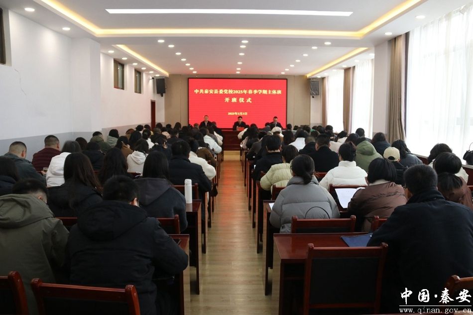 3月3日,秦安县委党校2025年春季学期主体班开班。县委副书记、统战部部长、党校校长张俊义出席开班仪式并讲话,县委组织部、县委党校相关负责人,全县新任科级领导干部培训班、“三方面”干部和新引进人才培训班参训学员共计90余人参加开班仪式。
