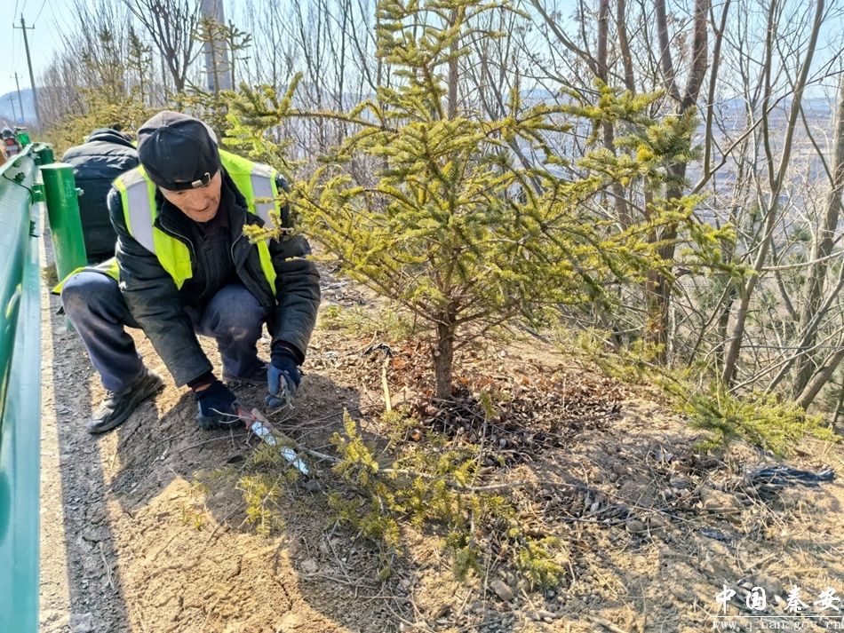 连日来,秦安县千户镇周密部署、统筹安排,积极组织护林员、公益性岗位人员和党员群众扎实有序开展春季行道树管护,为建设和美千户增绿添彩。