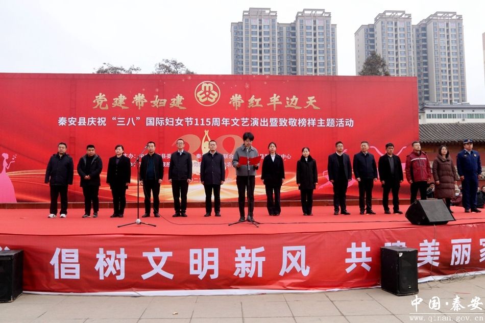 3月7日,秦安县举行庆祝“三八”国际妇女节115周年文艺演出暨致敬榜样主题活动,县直各部门、17镇妇联、巾帼志愿者代表参加活动。