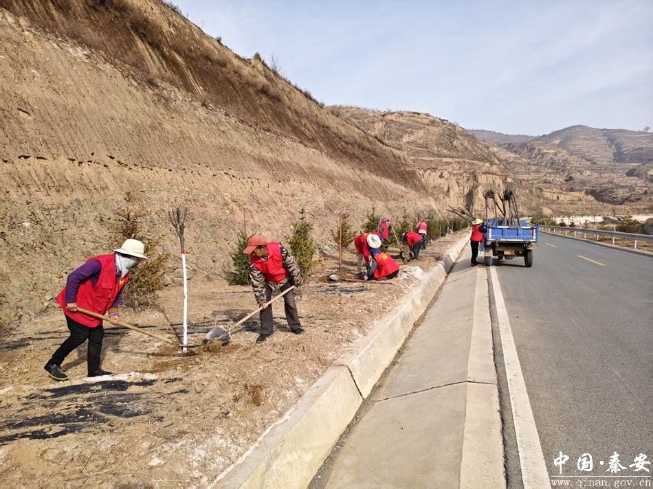 行万里善,志愿服务扬文明。安伏镇将“四百”主题活动与“主题党日+新时代文明实践活动”相结合,积极开展学雷锋志愿服务。党员干部带头,组织志愿者开展行道树栽植活动,以实际行动为安伏镇增添新绿。朱峡村帮扶队及村“两委”按照“以点带面”原则,选取朱峡错山的桃园为老果园改造示范点,通过县果业局提供的8000多棵桃树苗,引导朱峡村村民将105亩老果园进行改造栽植桃树,发展特色产业。Y418线道路两旁栽好的行道树、绿植、花卉,盛开的桃花,将成为Y418一条特色风景线。