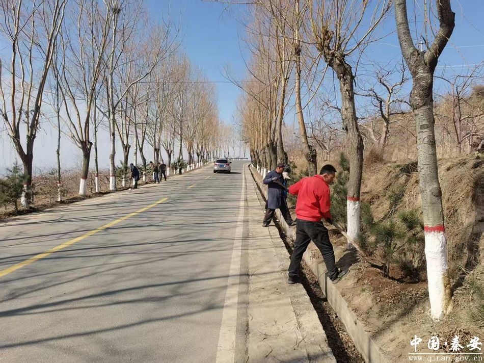 抓绿化提升,强化生态基底。坚持“适地适树”原则,对桃花会主会场及镇域主干道两侧开展绿植补植与景观优化。在桃花会主会场周边,种植山桃、海棠等观花树种,搭配云杉、冬青等乔、灌木,形成层次分明的景观组团,秦洼村至刘坪村环线以乡土树种为主,兼顾生态防护与观赏功能,同步推进道路两侧缺株断档、裸露地块绿化覆盖,形成连贯的生态景观带。