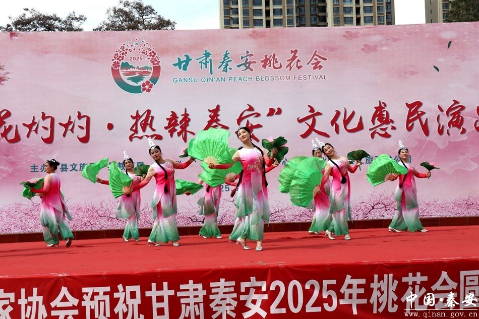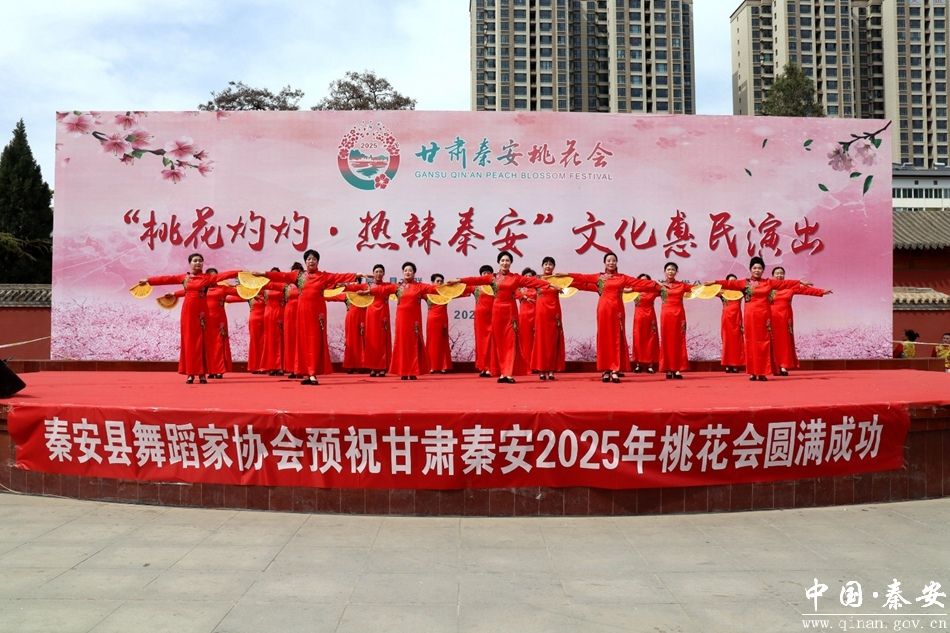 4月7日,2025年甘肃秦安桃花会 “桃花灼灼・热辣秦安” 文化惠民演出第五场——秦安县舞蹈家协会助力秦安桃花会专场演出在兴国文化广场举行,吸引众多居民和游客前来观看,现场人头攒动,热闹非凡。