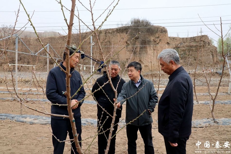 为进一步提升秦安县桃产业技术水平,推动低质低效果园改造升级,促进果农增收致富,4月11日,秦安县果业局特别邀请了国家桃产业技术体系首席科学家姜全一行专家团队,来到魏店镇陈庄村、魏南村、吊川村等低质低效果园改造蜜桃基地进行现场观摩和技术指导。