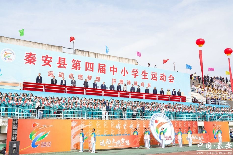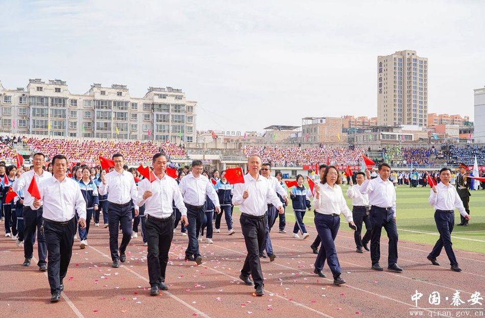4月15日,秦安县第四届中小学生运动会在县体育场开幕。开幕式现场彩旗飘扬,热闹非凡。市教育局党组成员、副局长岳定钧,县领导马昊莹,杨涛,任云飞,景鹏,雒小军,以及来自全县各中小学的师生代表、运动员、裁判员们齐聚一堂,共赴这场青春与活力的体育盛宴。