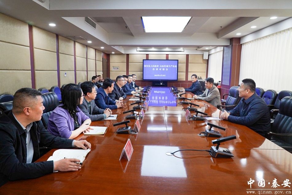 4月18日,秦安县政府与山东沂南丰产农业发展有限公司洽谈对接会召开。 山东沂南丰产农业发展有限公司董事长孙文龙、总经理孙同军、工程师唐宽信,秦安县委副书记、县长王龙强,副县长郑博参加会议。