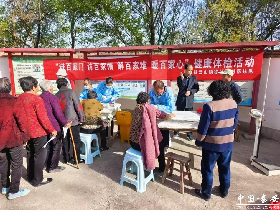 为深入践行“进百家门,访百家情,解百家难,暖百家心”主题活动要求,近日,秦安县云山镇徐张村驻村帮扶工作队联合镇卫生院,在村卫生室开展了老年人及慢性病的免费健康体检活动。活动现场,镇卫生院医疗团队为80余名村民提供免费体检和健康咨询服务,将优质医疗资源送到群众家门口。