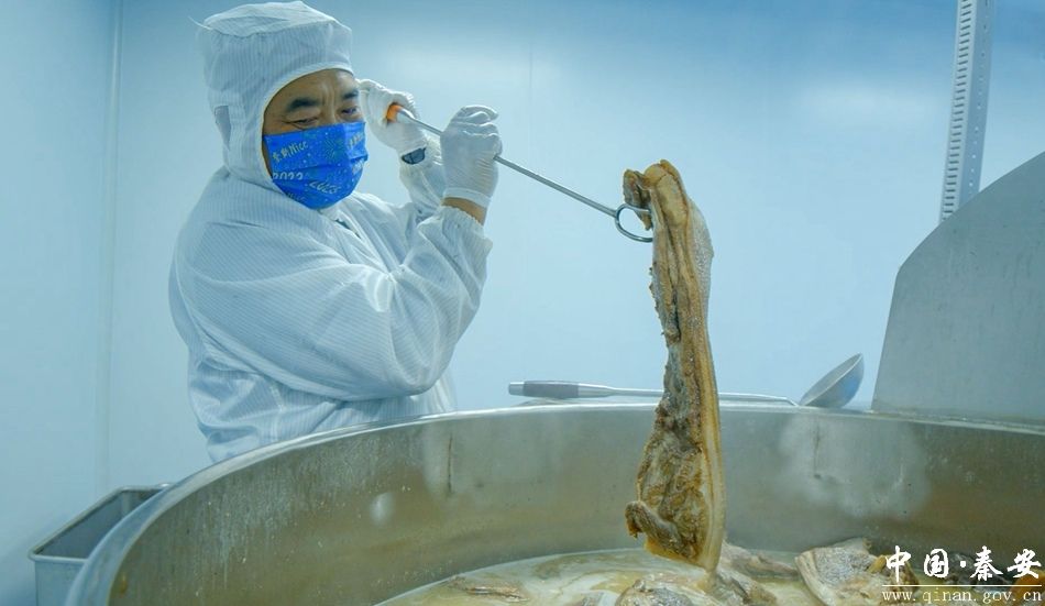 秦安腊肉作为当地传统美食,有着悠久的历史和独特的制作工艺,是当地饮食文化的代表之一。甘肃耕读食品有限公司自成立以来,便肩负起传承和创新秦安腊肉制作技艺的重任,该公司2024年12月入驻安伏现代农业产业园,借助园区完善的配套设施和政策支持,本着“打造优秀的绿色健康农产品品牌”,通过现代化生产与营销,让古老技艺焕发新生。