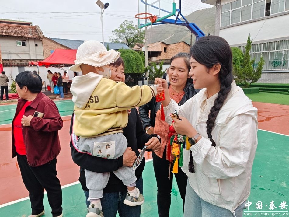 此外,志愿者还准备了各式各样的香包和彩绳,连同节日的祝福一同送给了现场的村民。活动现场,交织着欢声笑语,汇成一片其乐融融的节日图景。