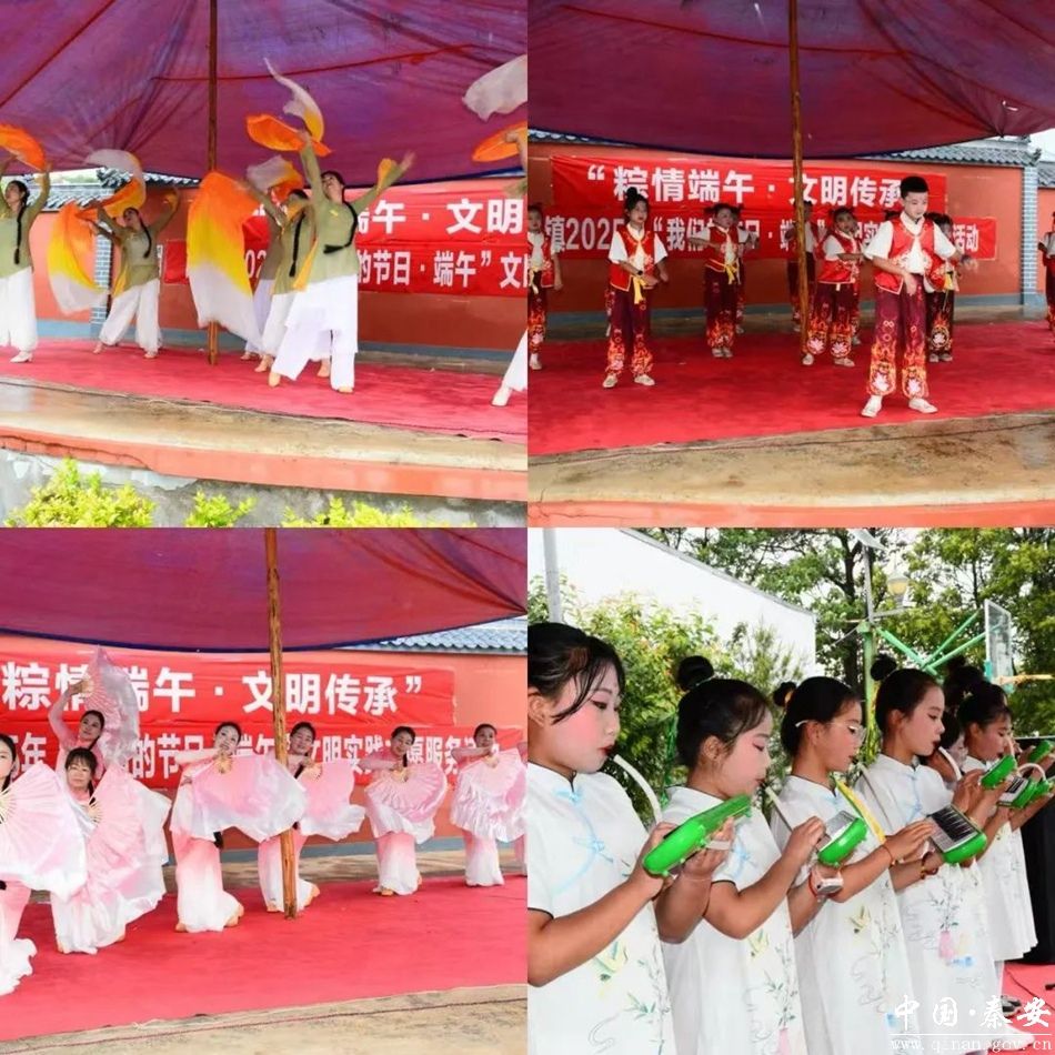 文艺汇演。活动邀请县文化馆、老年活动中心、西川学区、非遗传承人进行了演出,演出在舞蹈《黄河水从我家门前过》中拉开帷幕,演员们以翩跹舞姿展现出了文明新风,跳出了时代的节奏和对生活的热爱;歌曲《半沙壶》以悠扬的旋律,表达淡泊名利、向往自然的情感;武术表演《壳子棍》作为非物质文化遗产,赢得观众阵阵掌声。大家一边吃着粽子,一边观看节目,其乐融融、掌声不断。