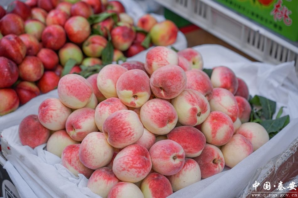 在秦安县大东巷,果农们一大早便将一颗颗娇艳欲滴的蜜桃整齐地摆放在摊位上,从摊位前走过,浓郁的桃香扑鼻而来。