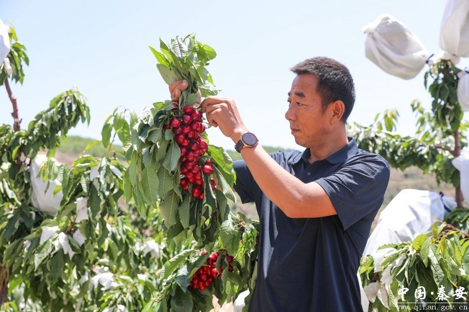 近日,在海拔1850米的秦安县王铺镇神仙岭,85亩樱桃种植基地迎来丰收季。曾经种植传统农作物的山区梯田,如今挂满了色泽红润、饱满诱人的樱桃,成为当地乡村振兴的新引擎。