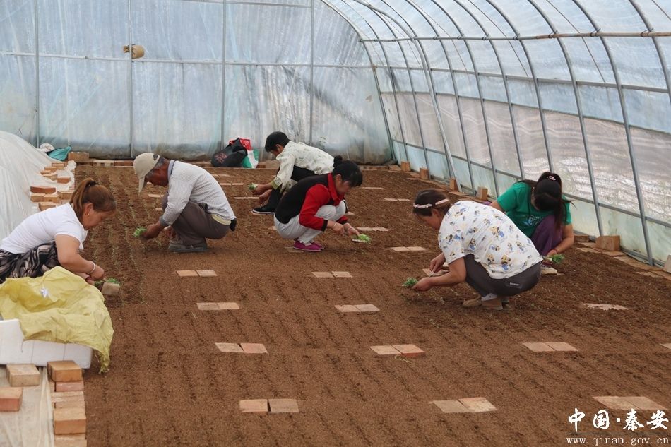 田间育苗正当时,产业振兴步履坚。日前,记者在秦安县王铺镇马铃薯原原种培育基地大棚内看到一片繁忙的景象,工人们蹲在垄间,将一株株马铃薯苗以五公分的间距精准栽种。