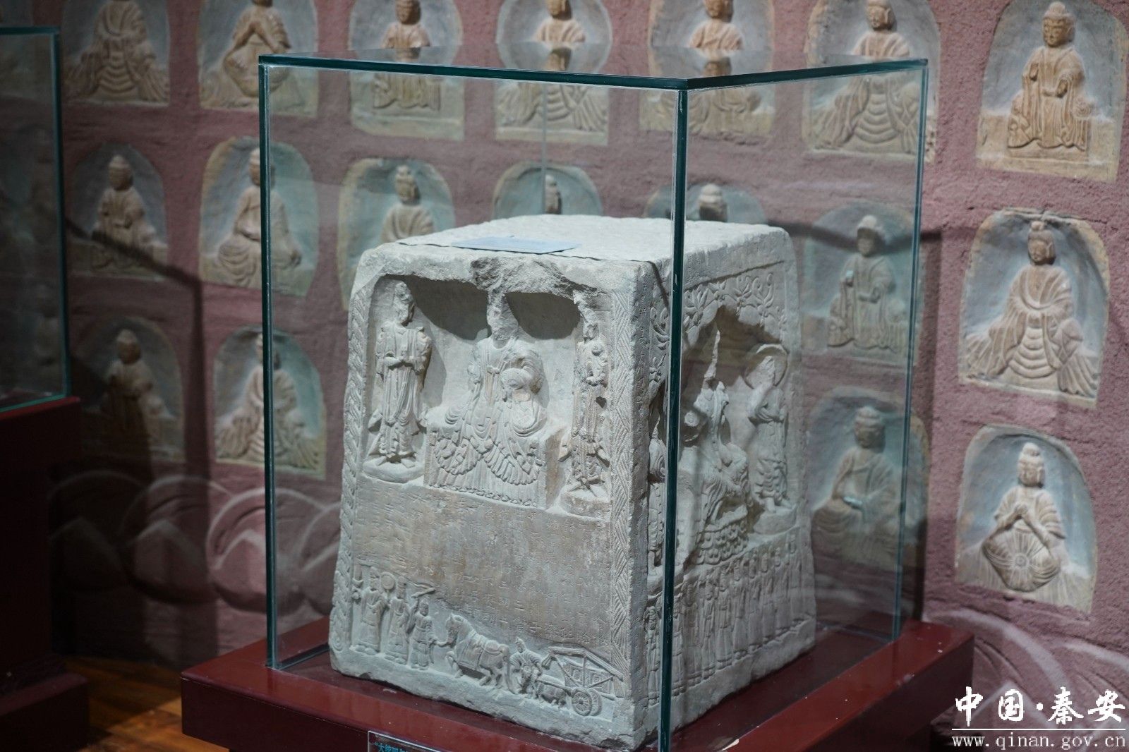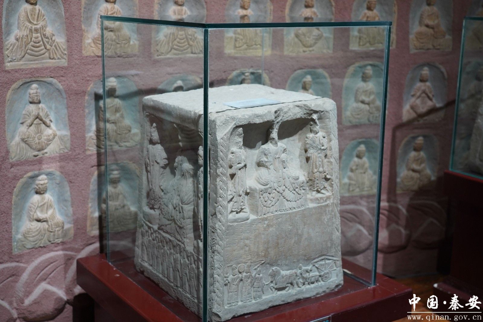 石造像塔于1990年在秦安县郭集乡邵庄村出土,高57厘米,宽47厘米,石造像塔每一面的雕刻都极为精细,展现出独特的艺术风格。塔的四周都雕刻佛像、菩萨、弟子供养人或佛传故事,刀法纯熟,线条流畅,人物神情潇酒,高雅大方。
