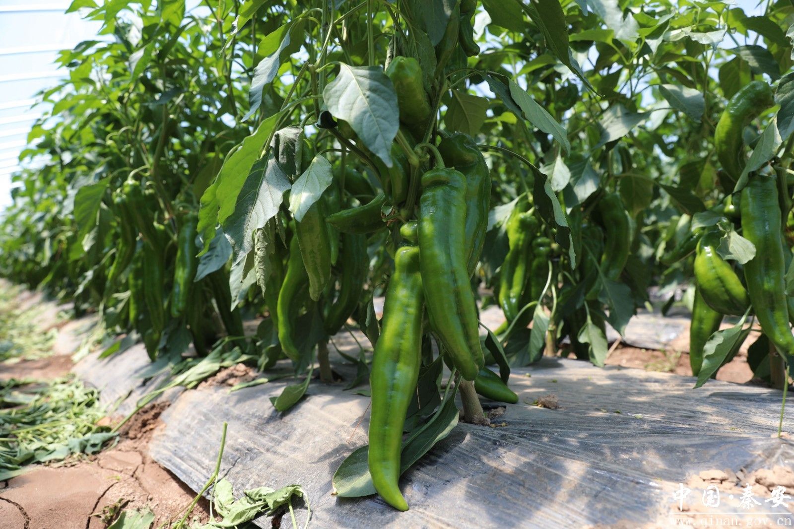 时下,走进秦安县云山镇潘河村的辣椒大棚里,一行行整齐的辣椒绿意盎然、枝繁叶茂,一串串翠绿的辣椒缀满枝头,长势喜人,丰收在望,工作人员正在棚里忙着做好田间管护,确保辣椒增产增收。