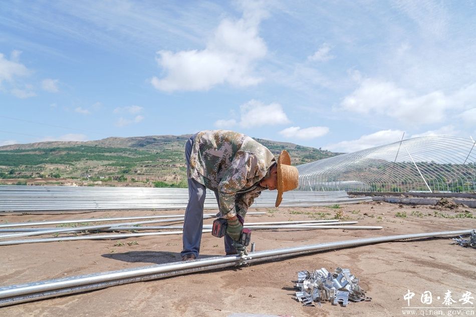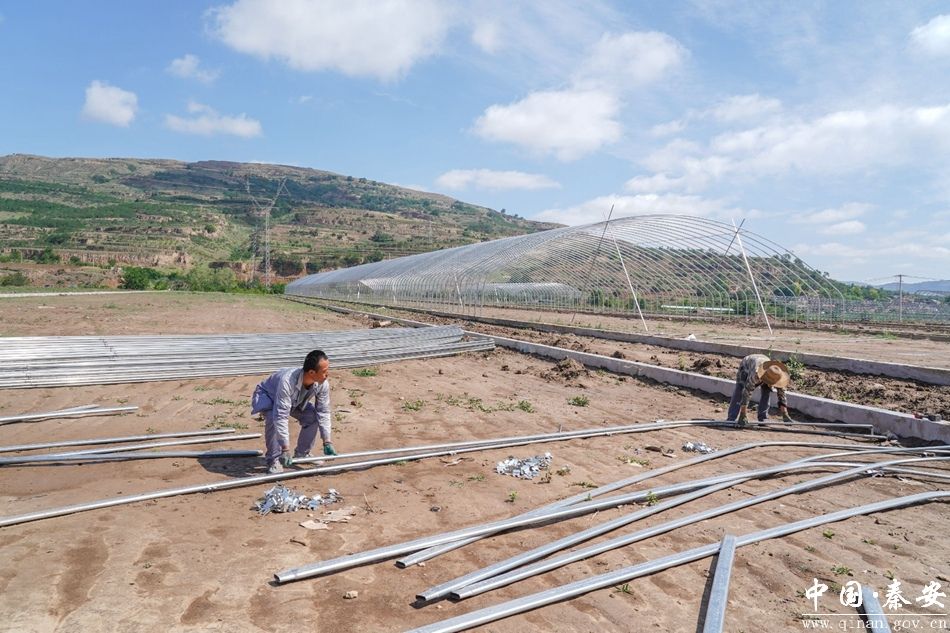 盛夏时节,秦安县陇城镇无土栽培蓝莓鲜果产业基地施工现场一派繁忙景象,机械轰鸣声与工人的指挥声交织,奏响乡村振兴的奋进乐章。