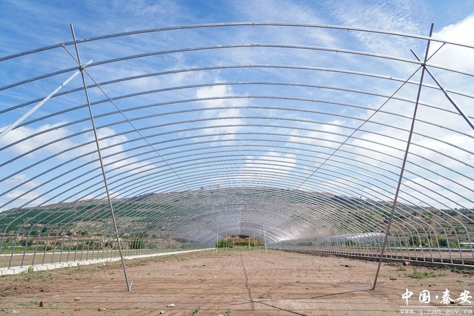 陇城镇党委副书记、镇长周全告诉记者:“蓝莓产业基地从3月底开始开工建设,截至目前已完成5个棚的建设,总建筑面积是4.8万平方米,7月底全面竣工并开始投入生产种植。”