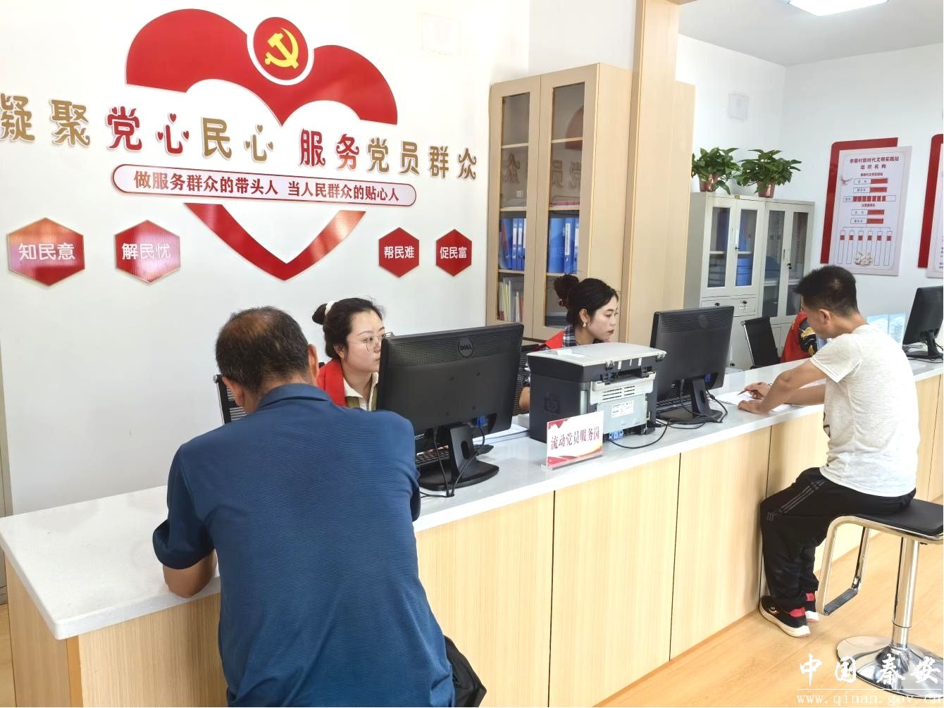 (王尹镇李磨村党群服务中心里村民正在办理业务)