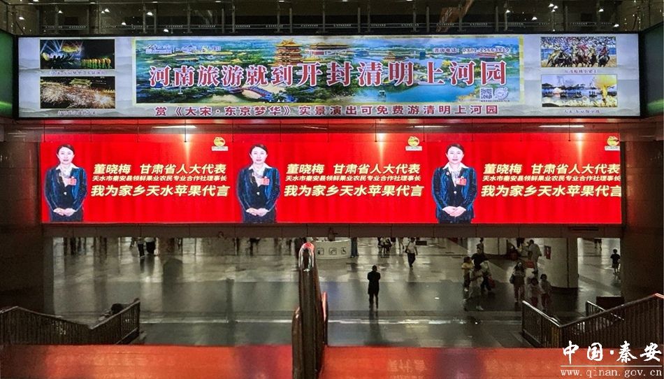 近日,一段由甘肃省人大代表、天水市秦安县领鲜果业农民专业合作社理事长董晓梅代言的秦安苹果宣传视频,正式亮相北京西站核心区域大屏,向南来北往的游客展示秦安苹果的独特魅力,标志着秦安苹果成功打破地域壁垒,借力国家级交通枢纽平台,向全国市场强势发声。