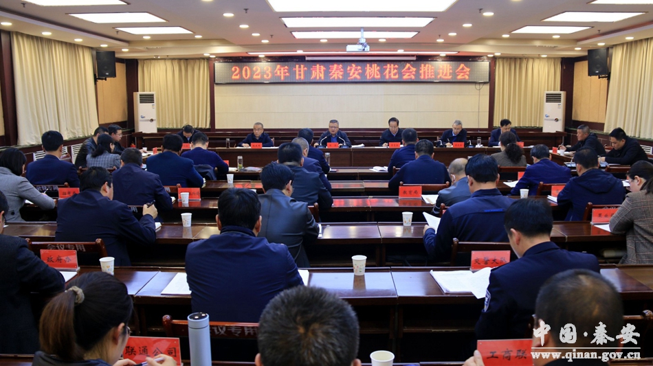 会上,县委常委、宣传部部长常乐解读了2023年甘肃秦安桃花会总体方案重点内容、汇报了桃花会开园仪式和重点文化活动筹备进展情况;县委常委、统战部部长扇忠瑜汇报了首届高质量发展智库论坛筹备进展情况;县政府副县长车晓珍汇报了招商引资项目推介会及汽车展销活动进展情况;县政府副县长杨成汇报了农产品展销活动筹备情况。