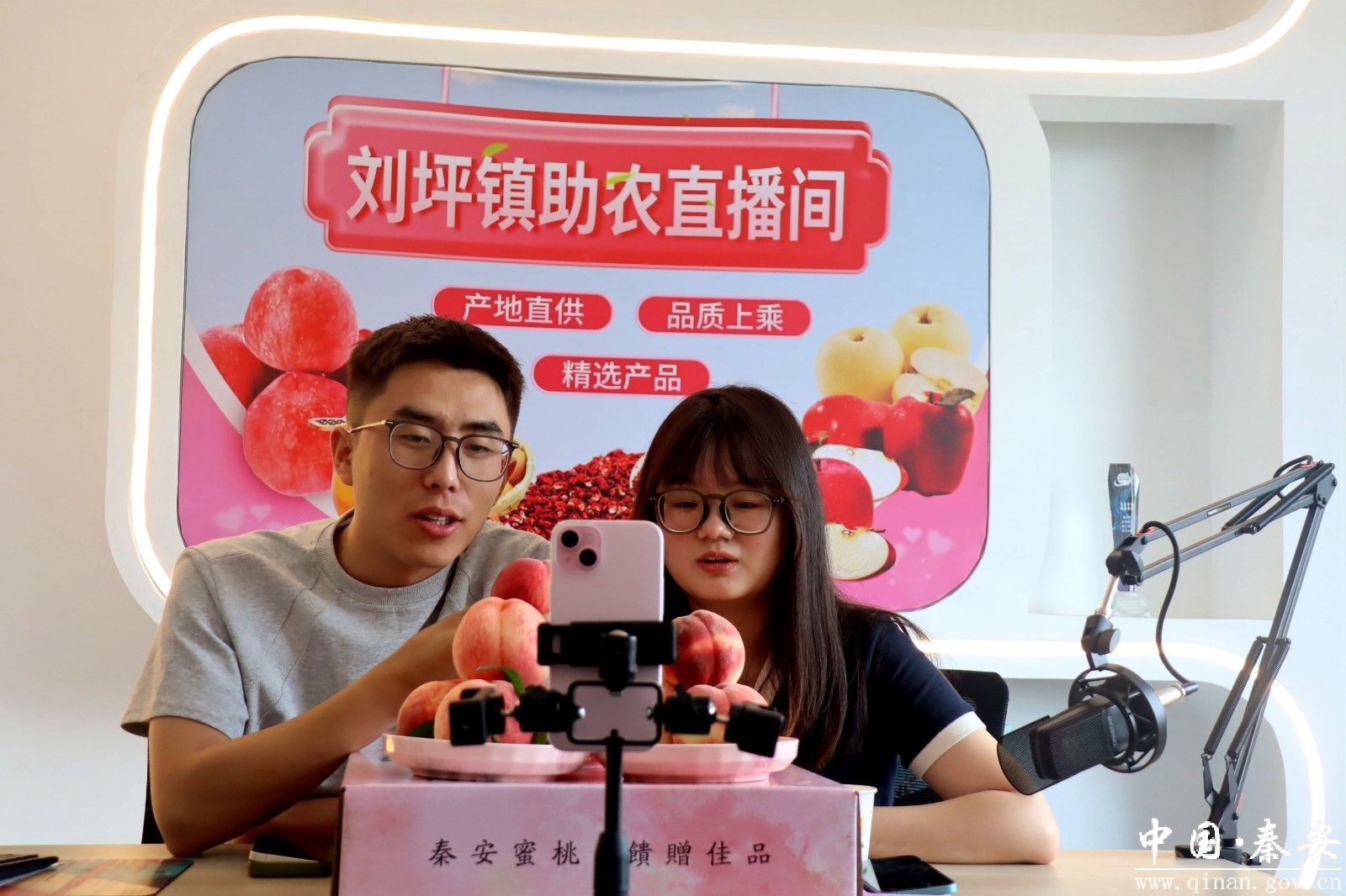直播间里更是热闹非凡,镇干部们化身“带货主播”,走进刘坪镇助农直播间,对着镜头向网友展示蜜桃的品质:“家人们看过来,这是我们刘坪的仓方早生,咬一口汁水直流,甜度特别高……”主播们熟练地介绍品种特点、种植环境,不时拿起蜜桃现场试吃,互动评论区里订单不断,单日线上销售额屡创新高。“我们刘坪镇电商中心在抖音平台进行销售,目前销售的产品是咱们的秦安蜜桃‘仓方早生’,每天的直播间下单量在一百单以上,主要销往北京、上海跟深圳,直播口碑良好,粉丝反馈也不错,后期‘北京七号’开园后我相信会有更多的单量。”刘坪镇干部雒攀告诉记者。