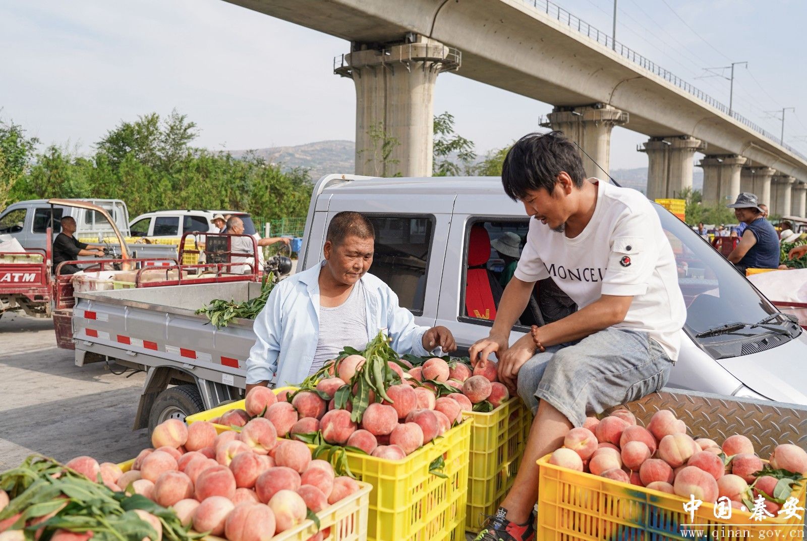 “我在这里收桃子已经有三十多年了,秦安的桃子品质非常好,口感也好,很受我们西宁人民的喜欢。现在收的是‘仓方早生’,过几天就开始收‘北京七号’了。”西宁客商唐守武告诉记者。
