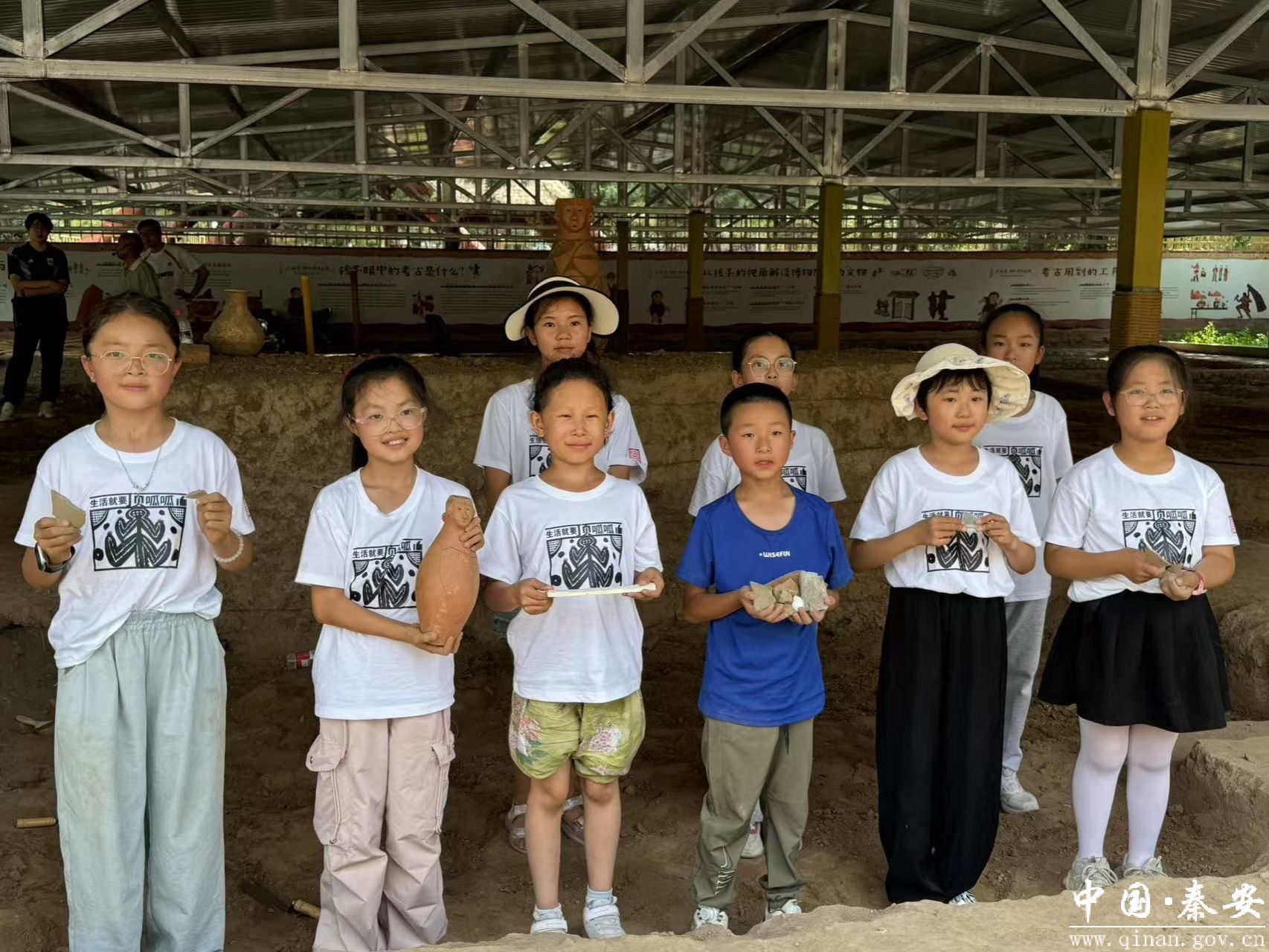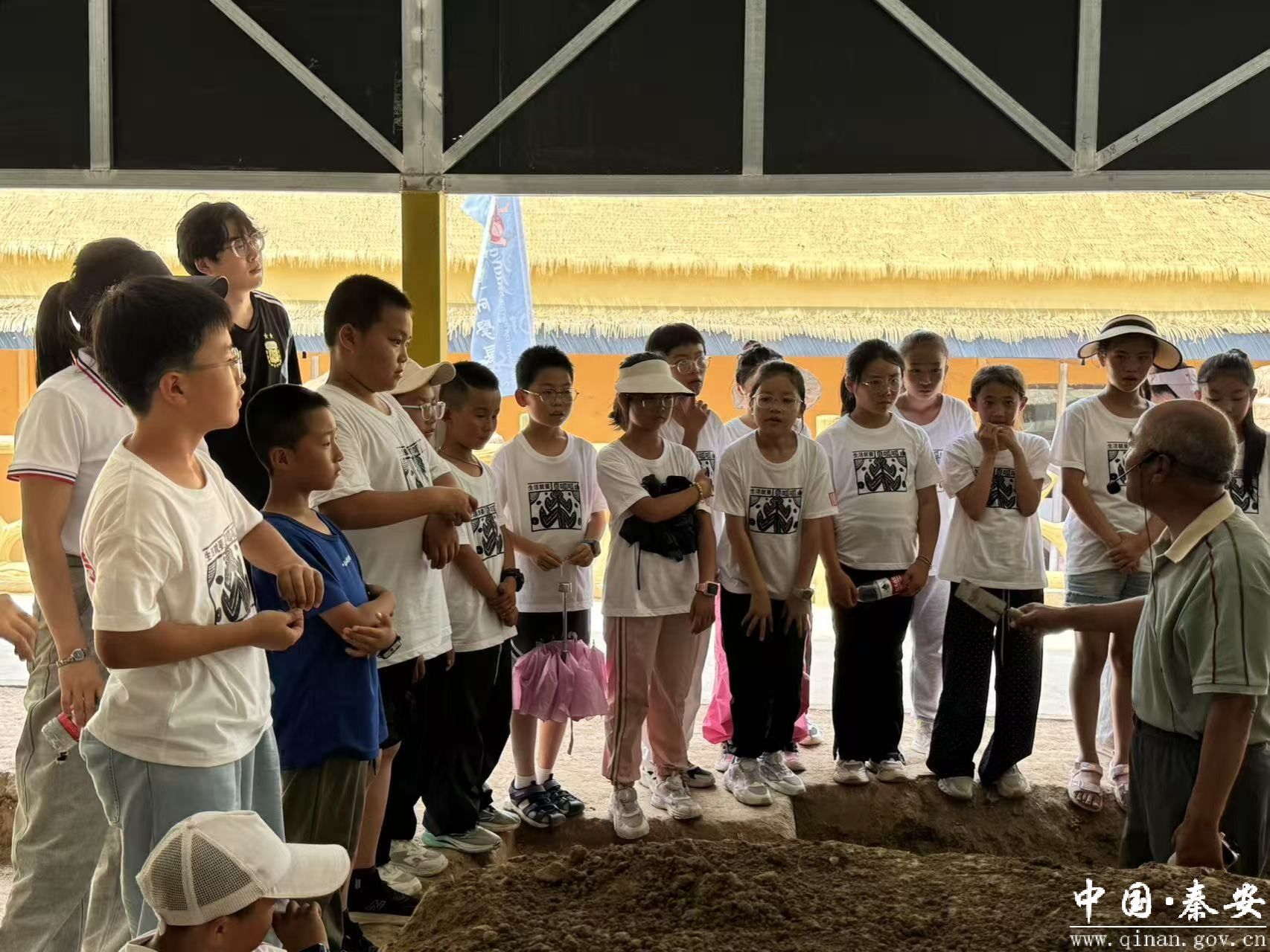 7月17日,35名来自会宁县的“小小讲解员”在会宁县博物馆的组织下,来到大地湾研学基地开展研学活动。14位博物馆工作人员和老师全程陪同,带领孩子们在这片承载着八千年前先民生活印记的土地上,参与了多项实地体验项目。