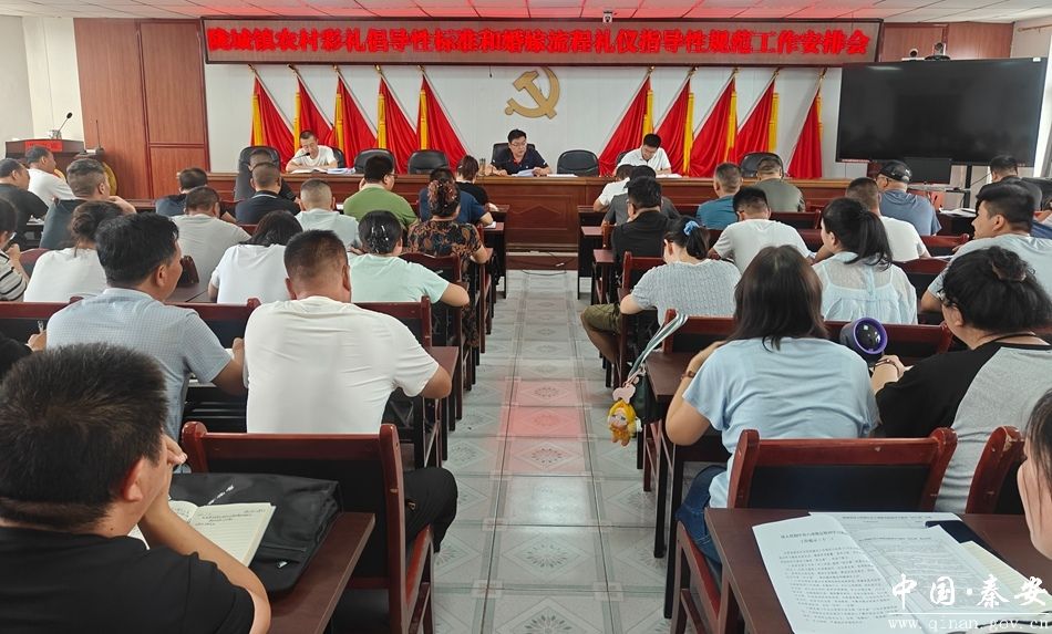 陇城镇组织镇村干部、驻村帮扶工作队,召开农村彩礼倡导性标准和婚嫁流程礼仪指导性规范工作安排会,集中解读彩礼倡导性标准及婚嫁流程规范,明确工作任务与推进步骤,确保各项工作传达到位、落实见效。