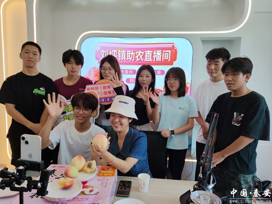 直播期间,大学生们摇身一变成为“带货主播”,在镜头前热情地向网友介绍秦安蜜桃。他们手持饱满多汁的蜜桃,详细讲解其“个大、色艳、味甜”的特点,还通过现场试吃等方式,让网友直观地感受秦安蜜桃的优良品质。