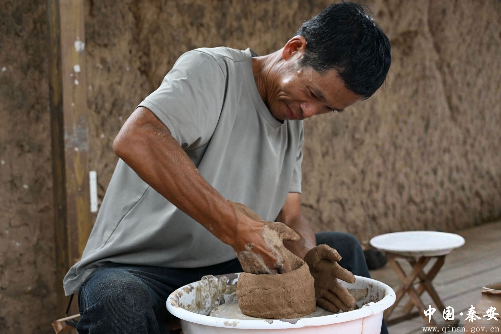 活动伊始,在秦安从事彩陶传承二十余年的谢长进师傅现场展示制陶技艺。制陶要经历揉泥、盘筑、拉坯、烧窑、彩绘等复杂的步骤。他在演示陶泥揉制工序时强调:“关陇彩陶文化是我们地域文化的瑰宝,更是中华优秀传统文化的重要组成部分,承载着千年文明记忆。作为传承人,我们必须以匠心守初心,将这份文化遗产传承好、发扬好,这是对历史负责,更是对未来担当。”