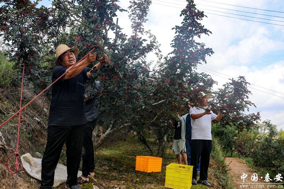 眼下,秦安县花椒进入丰收采摘期,椒农们挎着竹筐穿梭于树间,采摘着一串串成熟的花椒。