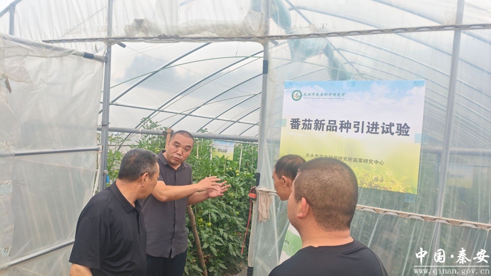 为深入贯彻落实国家乡村振兴战略,国家科技特派团蔬菜产业组聚焦国家重点帮扶县秦安县产业需求,重点在品种改良、技术集成、人才培养等方面开展精准帮扶,推动蔬菜产业高质量发展。8月20日,由国家科技特派团蔬菜产业组研究员张忠平带队,在秦安县王尹镇马河村组织开展了蔬菜新品种引进现场观摩会,并深入多个镇产业基地开展技术指导与培训。秦安县农业农村局、王尹镇及兴国镇、安伏镇、云山镇、兴丰镇等设施蔬菜产业基地技术骨干共40余人参加。