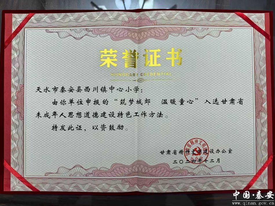 近日,甘肃省精神文明建设办公室公布了全省未成年人思想道德建设特色工作方法评选结果,秦安县西川镇中心小学申报的“筑梦城郊 温暖童心”项目成功入选。
