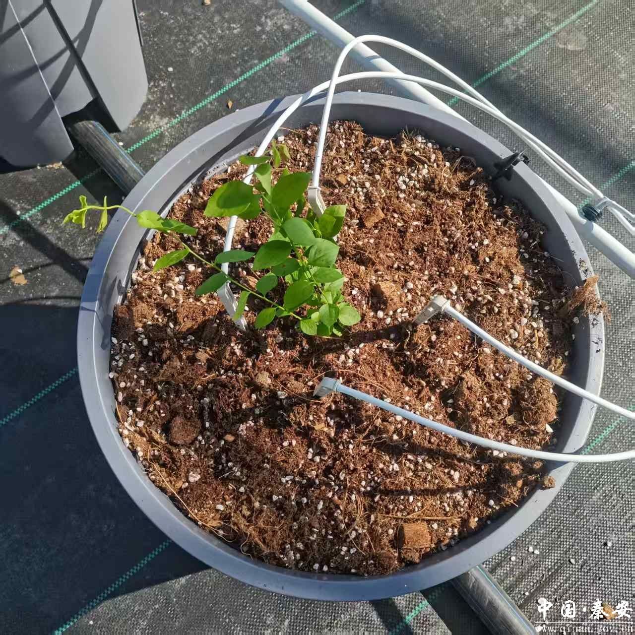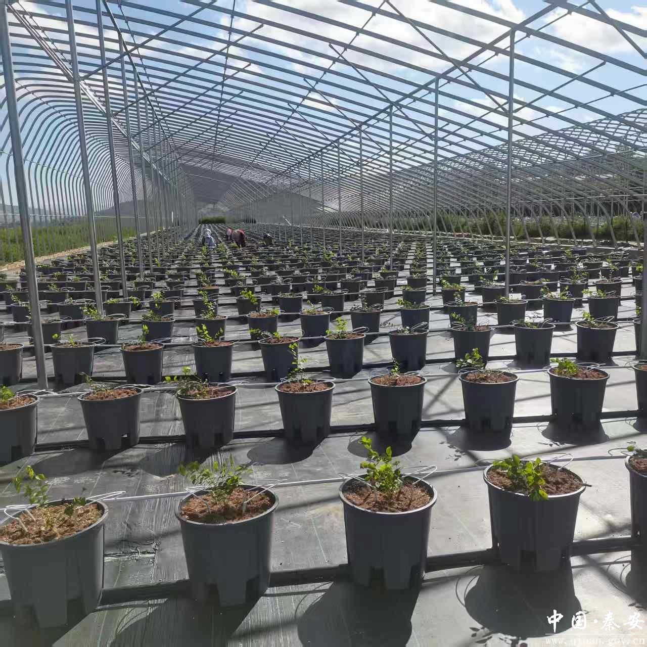 大棚内,映入眼帘的是工人们忙碌栽种的景象。栽植前,首先对土壤进行精密检测与调酸,将土壤PH值稳定在4.5至5.5之间,通过掺入草炭土、硫磺粉等改良剂,为喜酸性土壤的蓝莓幼苗提供理想的生长温床。随后,将幼苗进行带土移植,保持株距在1.5m左右,每根幼苗的根部都被精心培土覆盖,确保根系与土壤充分接触。为保持土壤湿润,大棚内还铺设了滴灌管道,管道如毛细血管般在每一盆幼苗上延伸,每株幼苗配4个滴头,每小时供水2升,实现了水肥的精准供给。