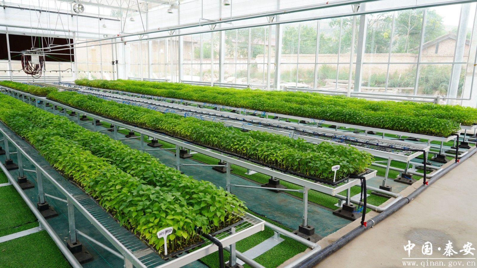 秦安县果蔬育苗中心位于五营镇蔡河村,建有智能连栋育苗温室1座,占地4036平方米,年可培育白脆瓜、黄瓜、西瓜、辣椒、番茄、甘蓝、油菜等优质果蔬种苗120-150万株,可满足全县设施农业产业发展种苗需求,同时供应周边县市。另外,中心还建有填土墙装配式日光温室18座,11480平方米,同步配备电气、智能物联网系统和卷帘机、水肥一体化等设施设备。目前种植长虹一号辣椒6棚,七寸红辣椒2棚,黑宝茄子1棚,金鹏一号西红柿1棚,小番茄2棚,星甜24号白脆瓜5棚。年可产各类瓜果蔬菜300余吨,预计年产值可达 200万元以上。