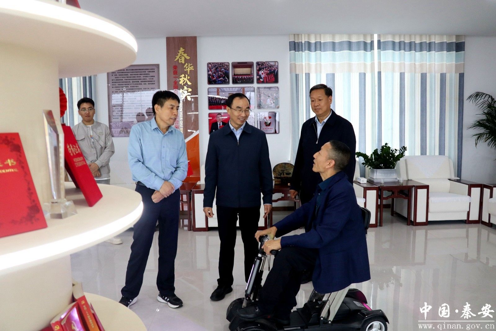 9月18日,省残联副理事长、一级巡视员宋保才来秦安县调研残疾人康复工作,省残联康复处负责人、一级调研员陈昇一同参加调研。