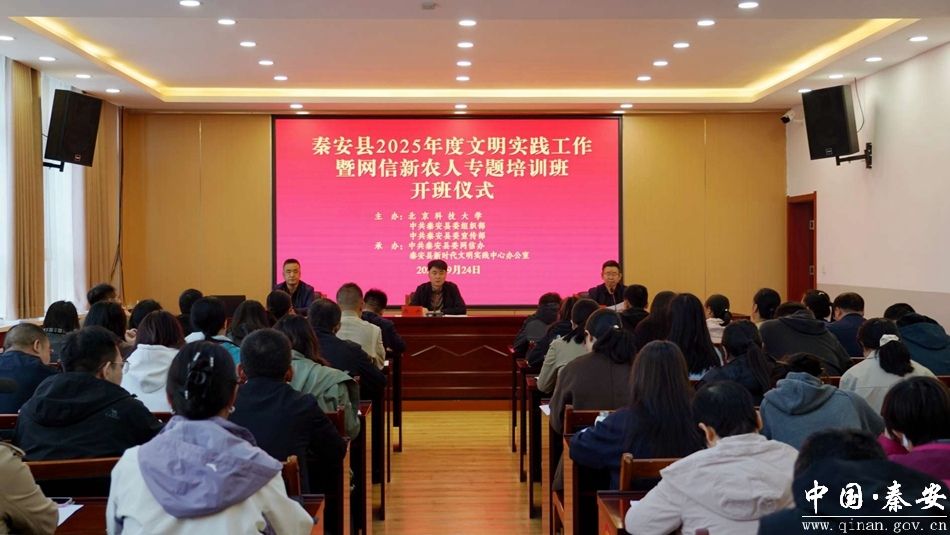 9月24日,秦安县2025年度文明实践工作暨网信新农人专题培训班开班。县委常委、宣传部部长陈升出席开班仪式并讲话。各镇分管领导,电商工作人员,县直相关部门宣传员,有关网信新农人等参加培训。