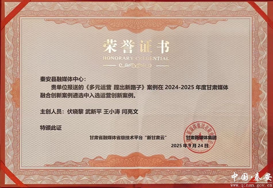 9月24日上午,“应变求变 智融深融”2025(第八届)甘肃媒体融合创新与发展论坛在兰州新区开幕。论坛上,秦安融媒案例《多元运营 蹚出新路子》入选2025(第八届)甘肃媒体融合创新与发展论坛运营创新案例。该案例系统总结了“五彩秦安”抖音号在平台运营、内容创新和用户互动传播方面的成功实践,为全省县级媒体融合创新发展提供了可资借鉴的“秦安样本”。