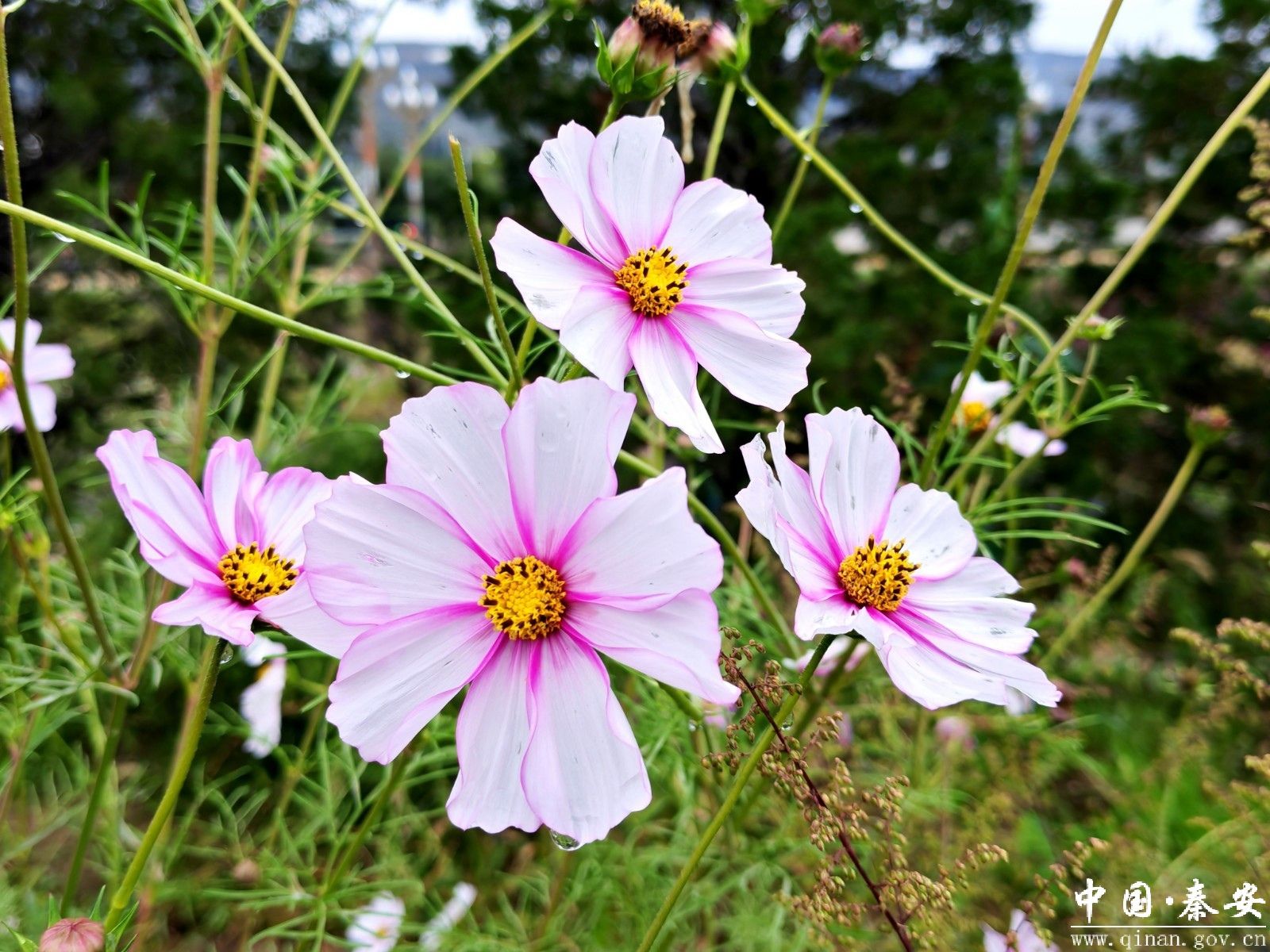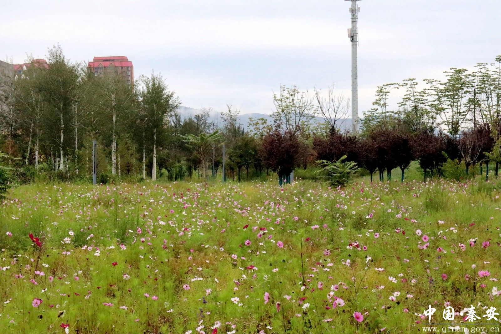 城郊及乡村的秋景更是美不胜收。城郊一处角落里,一枝枝、一簇簇八瓣梅正迎风绽放着,有淡雅的粉白、娇嫩的粉红,也有明艳的玫红和沉静的淡紫,有时一朵花上还会呈现出渐变的色彩,为秦安的深秋增添了一抹亮丽而温暖的色彩。果园里,一个个苹果缀满枝头,红的似火,黄的如金,与绿叶相互映衬,一派丰收的景象。山林间,树木的叶子有的金黄透亮,有的橙红似火,有的仍带着几分未褪的绿意,青、黄、红、橙交织在一起,层层叠叠,如诗如画。