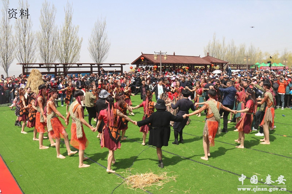 结合大地湾原始先民着装特点,围绕篝火载歌载舞的生动场面,再现原始先民的生活场景,用舞蹈语言演绎彩陶制作过程,让广大游客感受大地湾文化等秦安厚重的历史文化。时间:2023年4月上旬,地点:兴国文化广场、有关桃园景区。