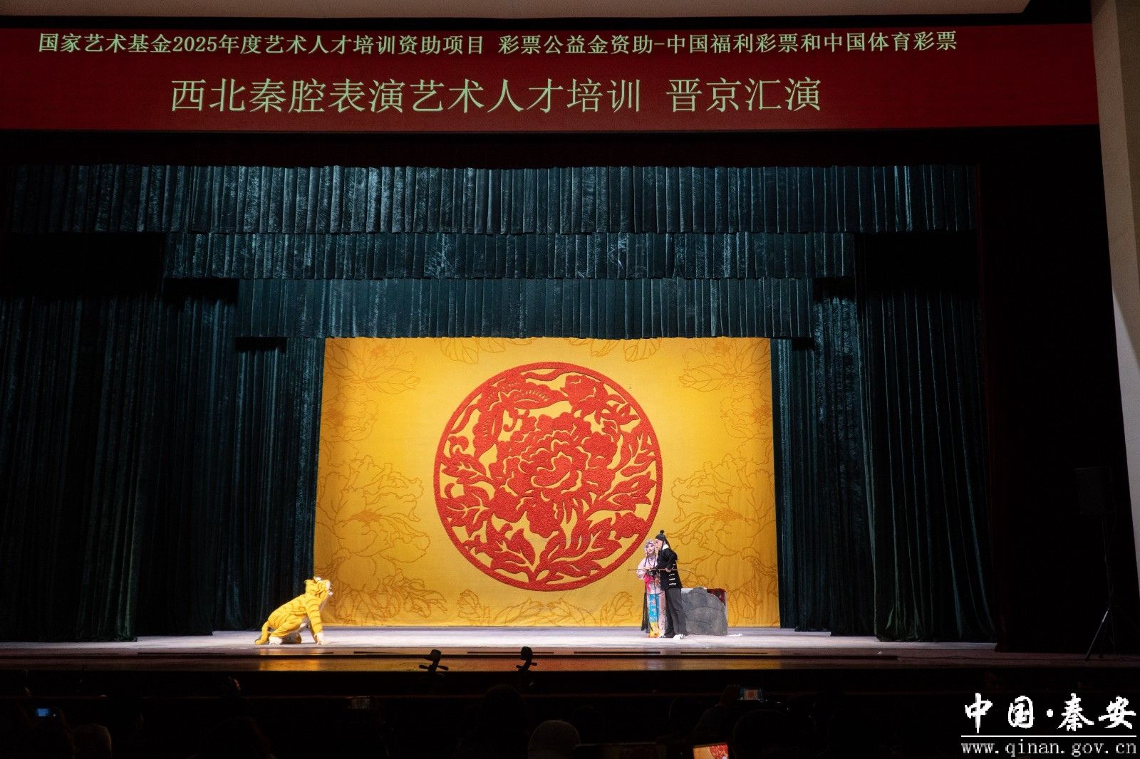 近日,由国家艺术基金管理中心、北京科技大学联合主办,北京科技大学人文素质教育中心与乡村振兴与县域经济发展研究院共同承办,天水市西秦腔研究院、秦安县文体广电和旅游局(文化馆)协办的国家艺术基金2025年度艺术人才培训项目《西北秦腔表演艺术人才培训》汇报演出,先后在北京科技大学、中国戏曲学院及梅兰芳大剧院三大平台精彩亮相。20名秦腔新秀轮番登台,以扎实的唱念做打功底演绎经典,高亢婉转的唱腔、细腻传神的身段直击人心,不仅赢得各界观众一致好评,更让源自黄土地的秦腔艺术,在京城舞台焕发出蓬勃新活力。