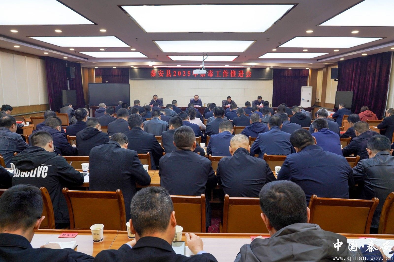 10月30日,秦安县召开禁毒工作推进会议,县领导刘云桂、宋军吉、赵智彦、陈存录,各镇、县直有关部门负责人和县公安局相关警种及各派出所负责人参加会议。
