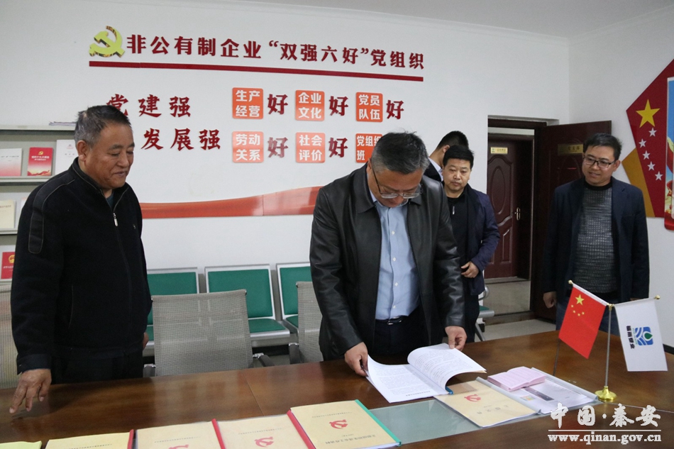 近日,秦安县委书记周济到甘肃福雨塑业有限公司党支部调研基层党建工作,县政府副县长车晓珍一同调研。