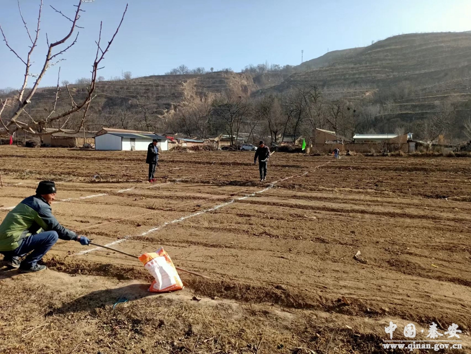 在魏店镇川区村观光农业示范基地,只见村民们在已经平整的土地上,施肥松土,量尺拉线,起垄覆膜。基地负责人说:“示范基地是在2022年450亩现代观光农业示范基地建设工作基础上,充分发挥党建引领作用,建立‘党支部+农户’的种植模式,通过强化组织保障、技术指导和宣传动员等措施,引导农户转变种植观念,将魏南、陈庄、吊川川道3村的1000亩老旧果园,通过挖除老旧苹果树、深挖翻耕平整土地,引进1000亩优质蜜桃,同步实施林下豆类种植1500亩,进一步提高土地利用率。”