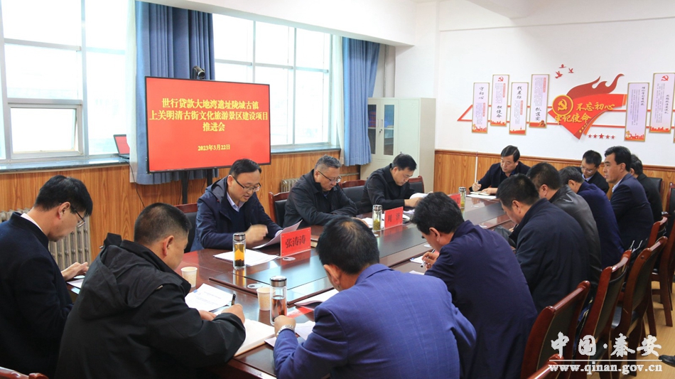 3月22日,世行贷款大地湾遗址-陇城古镇-上关明清街旅游景区建设项目推进会在秦安县莲花镇政府召开。县委书记周济参加会议并作了讲话。县委常委、常务副县长张俊义,副县长张涛涛及五营镇、陇城镇和各相关单位主要负责人参加会议。
