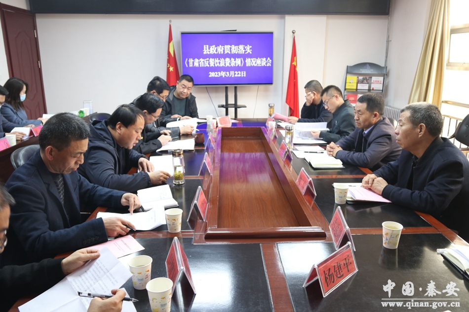在随后召开的座谈会上,与会人员专题学习了《甘肃省反餐饮浪费条例》;县市场监管局、县商务局、县教育局、县卫健局等部门结合各自职责就《甘肃省反餐饮浪费条例》颁布实施一年来所做的工作、存在的问题和下一步打算作了汇报。