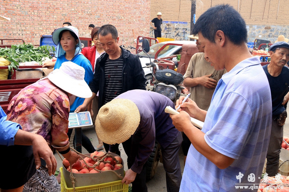 由于桃的成熟到上市的采摘窗口时间短,果品代办商就起到了重要作用,他们一方面加大信息收集,招引客商前来;一方面,积极对接种植大户,代办上门服务,组织村民及时采摘销售,赶在这个窗口时间之内把桃推向市场,在保证桃的新鲜度、卖出好价格的同时,也解决了果农销售难题,为他们带来最大的收益。“我今天给平凉客户收,价格在3.5-3.8元之间,一天能收2-3万斤,当天就发走了。”果品代办商杨维忠说。