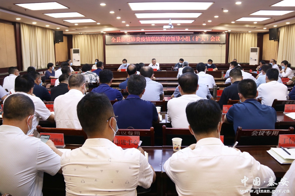 7月20日,秦安县召开新冠肺炎疫情联防联控领导小组(扩大)会议,分析研判全县疫情防控工作中存在的问题和短板,对下一步疫情防控工作进行再安排再部署。县委书记周济,县委副书记、县长王龙强,县人大常委会主任李宽余,县政协主席杨喜春等县四大组织在家领导及各镇、相关成员单位主要负责人参加会议。