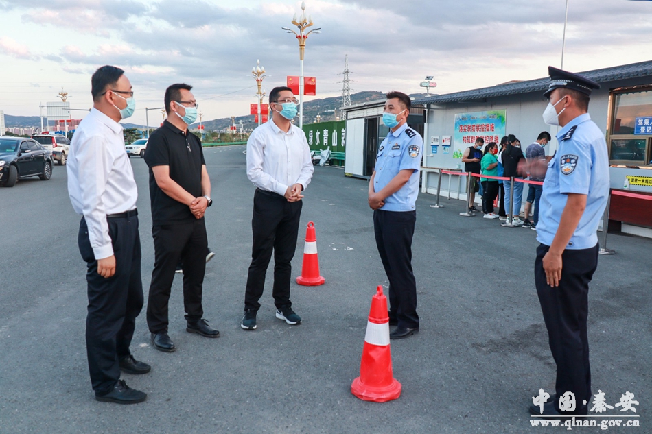 王龙强一行先后来到国道出入口、天平高速秦安出入口、天平高速安伏出入口、叶堡镇交通检疫卡口和叶堡镇沿街饭店等地,详细了解各管控卡口过往车辆排查、信息登记、行程码查验、值班值守、后勤保障和餐饮经营场所落实疫情防控措施等情况,对存在的问题现场提出具体整改要求,并叮嘱现场防疫人员要按照规定做好个人防护和防暑降温等工作,注意自身安全。